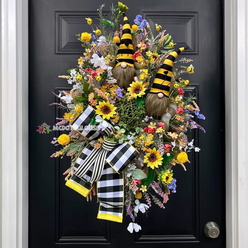 🐝Whimsical Bee Wreath, Summer Bee Wreath, Gnome Wreath, Fall Wreath, Farmhouse Wreath, Buffalo Check Wreath.This design will brighten your home for many years to come. Perfect for Spring, Summer, and Fall. Great for your front.