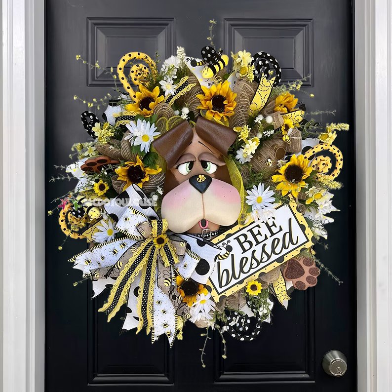 Greet your guests with this Adorable Dog wreath on your front door or entry way.This wreath is about to start a new season in your circle of friends in spring and summer!