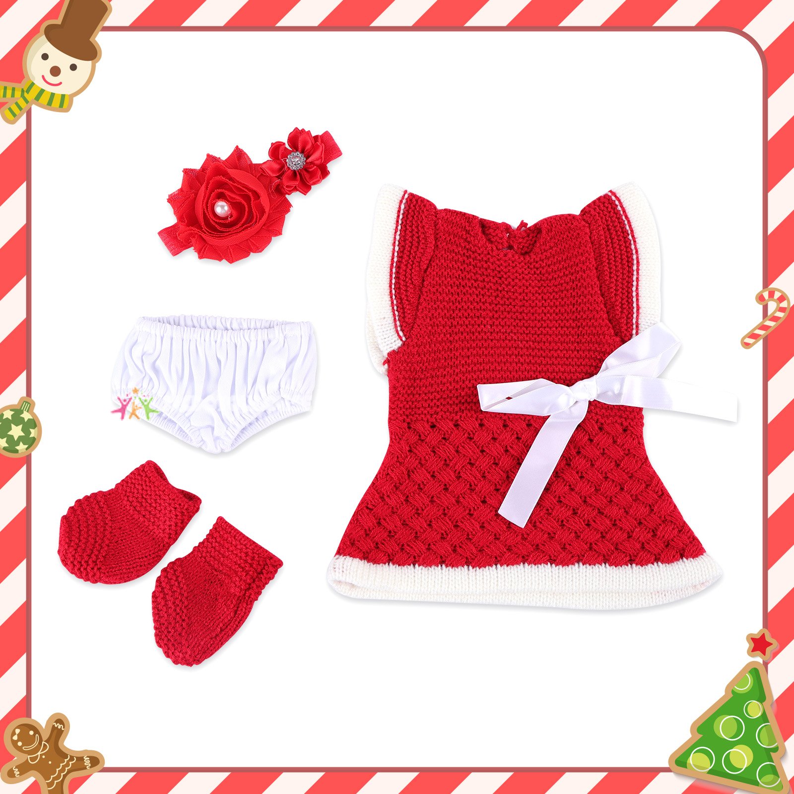 🔔[Christmas Celebration] For 12" Full Body Silicone Baby Doll Clothing 4-Pieces Set Accessories