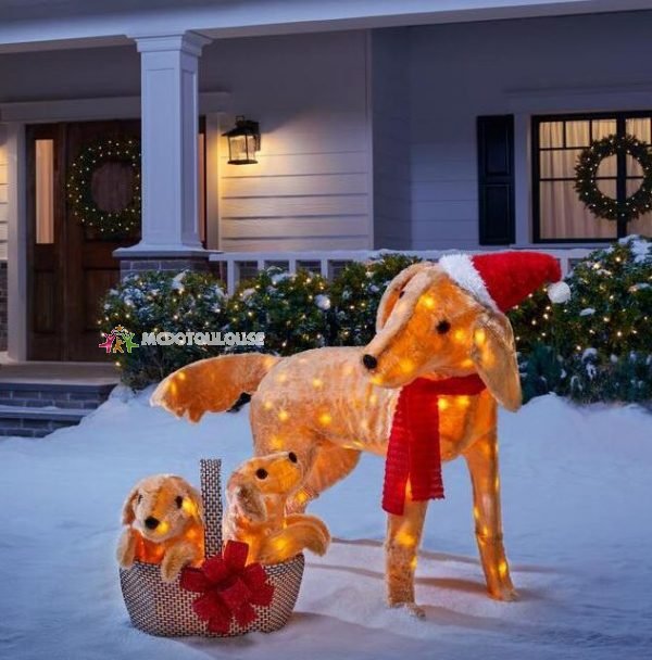 Christmas-2 piece adorable dogs led golden retriever with basket of puppies