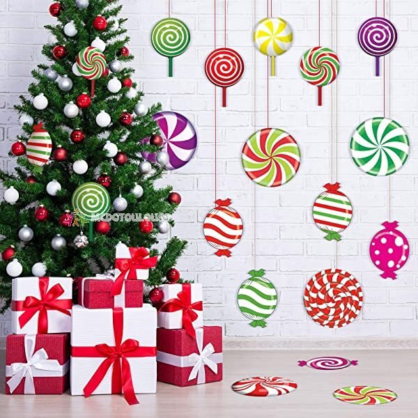 Christmas-30 pieces peppermint cutouts colorful candies round lollipop cutouts for Christmas decoration candy party wall cutouts with stickers xmas candy party decor classroom bulletin board decoration