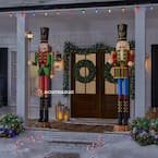 Decorate your lawn or front porch for a festive look with this 8-foot animated nutcracker yard sculpture. Illuminated with red LEDs, the digital eyes move and blink to deliver an eye-catching impression throughout the holidays, while the background music spreads seasonal cheer. A metal frame allows safe setup, and the integrated settings let you easily adjust the volume. Featuring a multicolored design, this nutcracker blends in with your decorative scheme, while the polystyrene material withstands wear and tear. This animated nutcracker yard sculpture collapses after your celebration for simplified storage.
