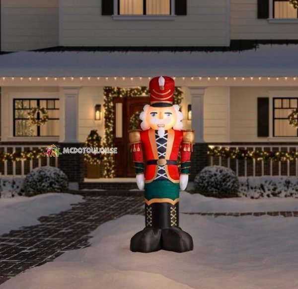 Deck the yard with a Airblown Inflatable Luxe Nutcracker in luxurious Christmas attire. Featuring metallic and fuzzy fabric accents, this impressive outdoor inflatable makes a delightful addition to your Christmas decorations. Setup is super simple. Just plug it in, stake it down and watch the magic unfold. Includes everything needed for easy outdoor setup.