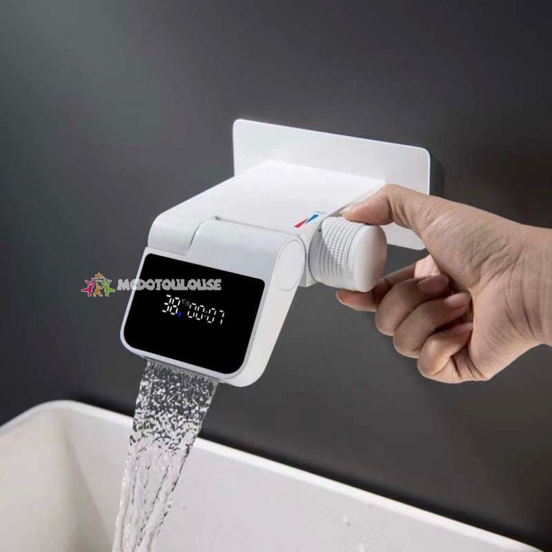 Mcdotoulouse White Brass Foldable Basin Faucet with LED Display and Waterfall Spout