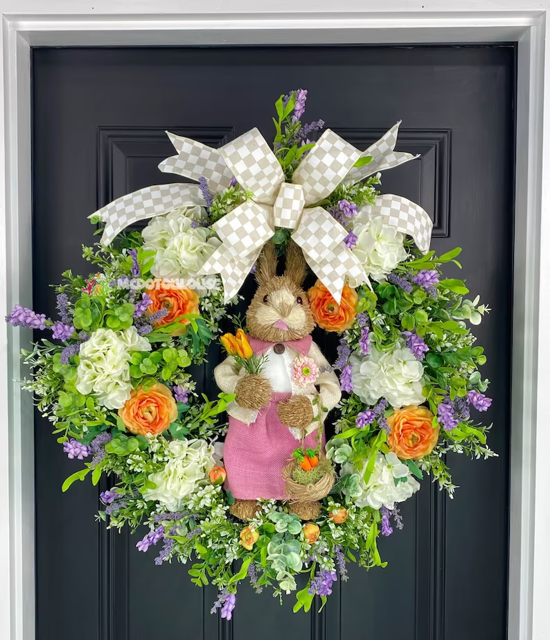 Elegant and Timeless Large Easter Bunny Wreath that is gorgeously detailed for a lovely finishing touch to your Easter front door decor.