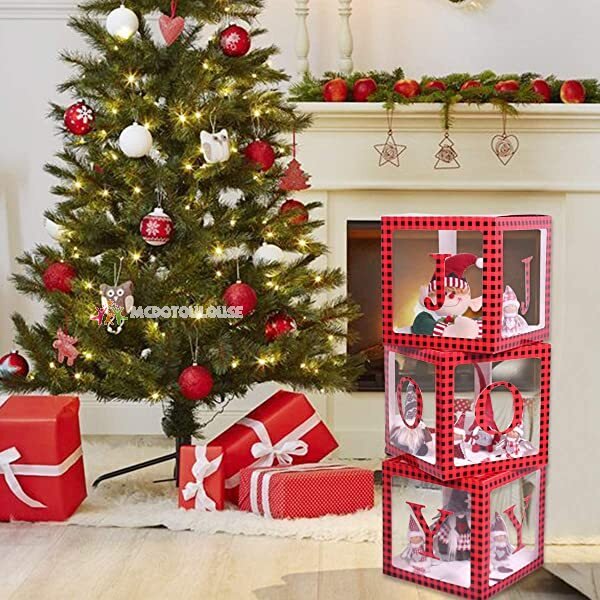 Christmas-Christmas decorations red black plaid joy box large transparent Christmas joy blocks card boxes decorations for Christmas party home decor holiday party decorations