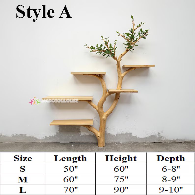 This tree shaped bookshelf is designed by us to be very easy to install and has good load bearing capacity. We create beautiful, handmade shelves from natural tree branches, highlighting their unique shapes and textures. Our skilled artisans put their heart into every piece, making each shelf a unique work of art. Committed to sustainability and quality, we offer decor that is both useful and celebrates nature's beauty.
