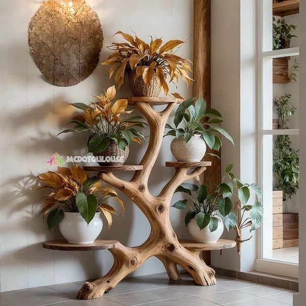 The product is made from natural wood, ensuring durability and high load-bearing capacity. Designed with many floors with tree branches acting as shelves, this shelf allows you to display many types of bonsai at the same time while still maintaining neatness and harmony. Each floor has a reasonable distance, enough space for the tree to grow naturally and show off its beauty. This helps you optimize the use of space without causing confusion or taking up too much space.