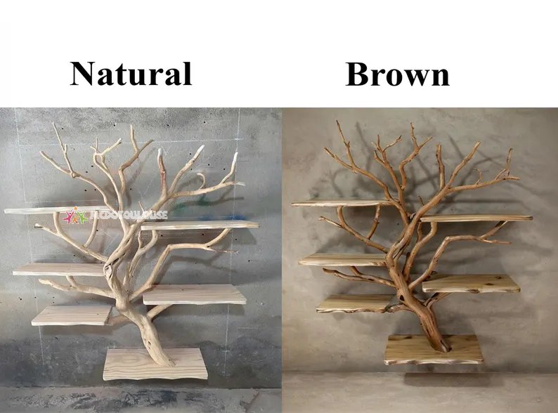 This tree branch shelves wall art is designed by us to be very easy to install and has good load bearing capacity. We create beautiful, handmade shelves from natural tree branches, highlighting their unique shapes and textures. Our skilled artisans put their heart into every piece, making each shelf a unique work of art. Committed to sustainability and quality, we offer decor that is both useful and celebrates nature's beauty.