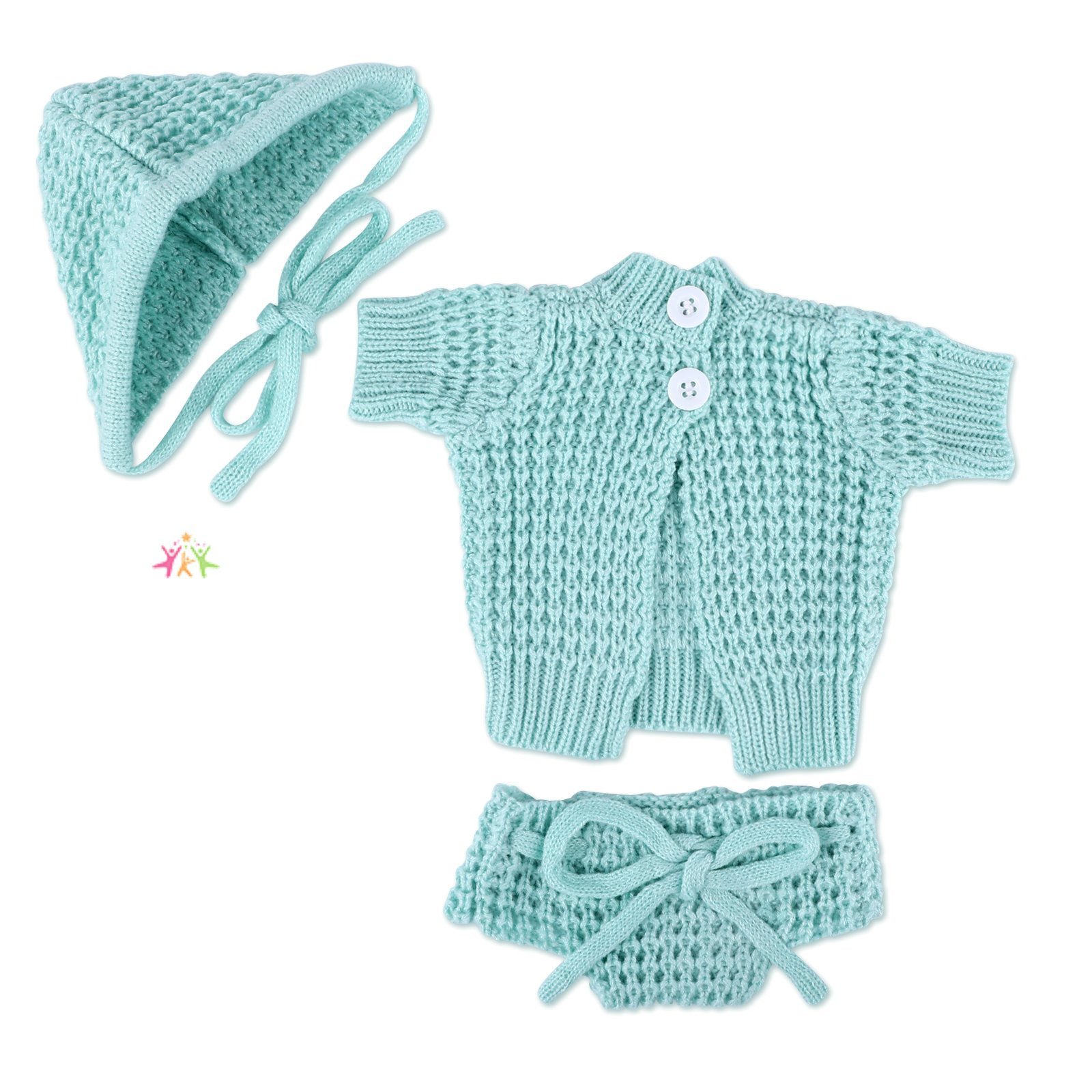 For 16" Full Body Silicone Baby Doll Green Knitted Suit Clothing 3-Pieces Set Accessories