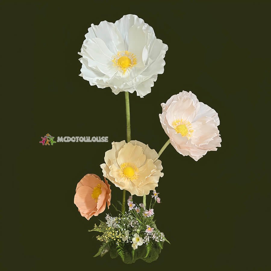 Our stunning giant flower decor has a beautiful shape and excellent workmanship. It can be disassembled at will for easy transportation. One person can complete the assembly. The height of the liftable base can be adjusted arbitrarily. The flower stem of the aluminum-plastic tube can be bent into the desired shape,outdoor waterproof.