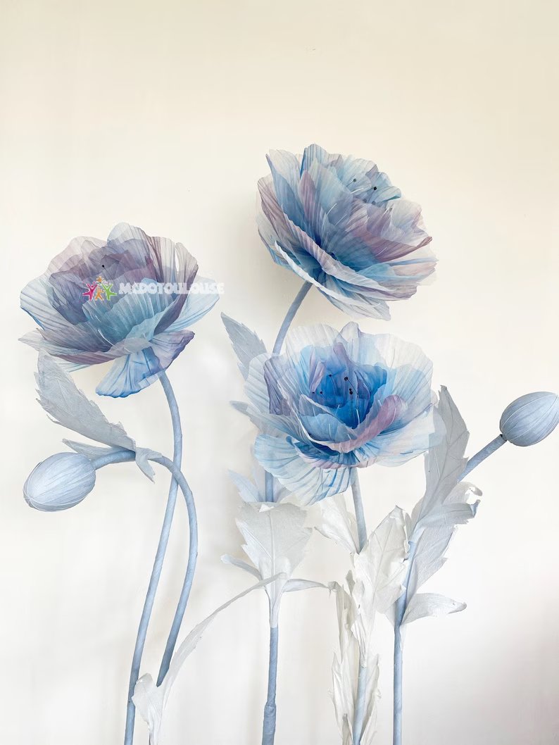 Material of flower: Crepe paper, silk, organza