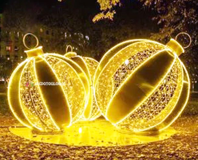 Gold Christmas Balls with Warm White Lights