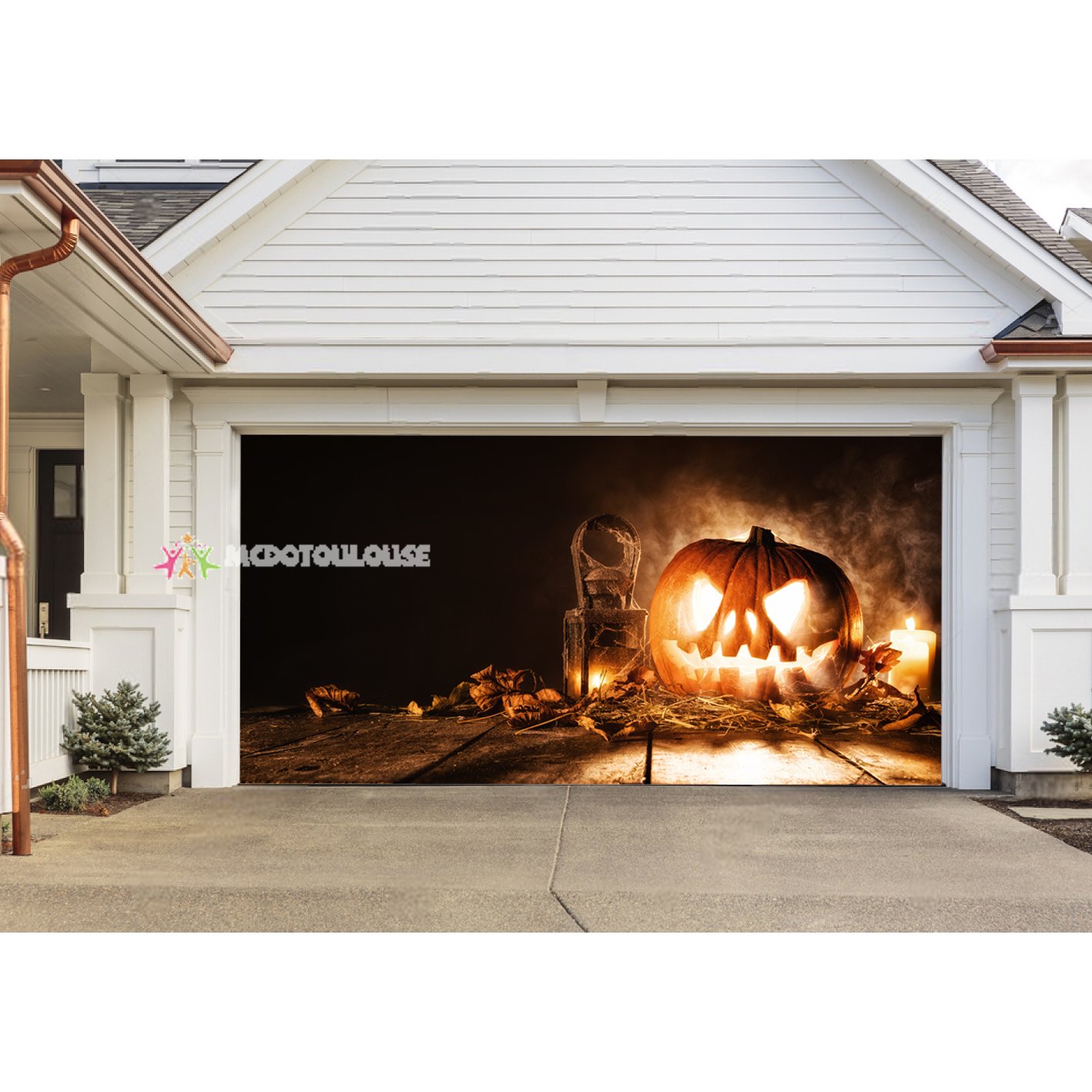 This year, we're making your Halloween a treat! Make the hair of beholders stand on end with this Halloween themed garage door banner! A banner mural that can be hung on your garage door in minutes.