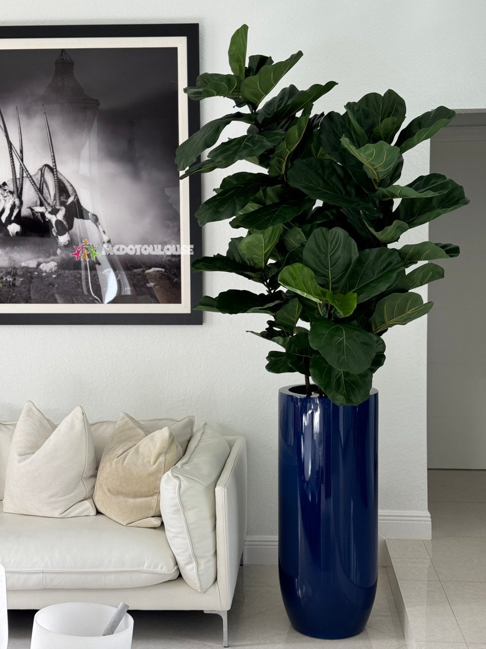 Glossy Cobalt Blue St. Tropez planter with large fiddle leaf tree.