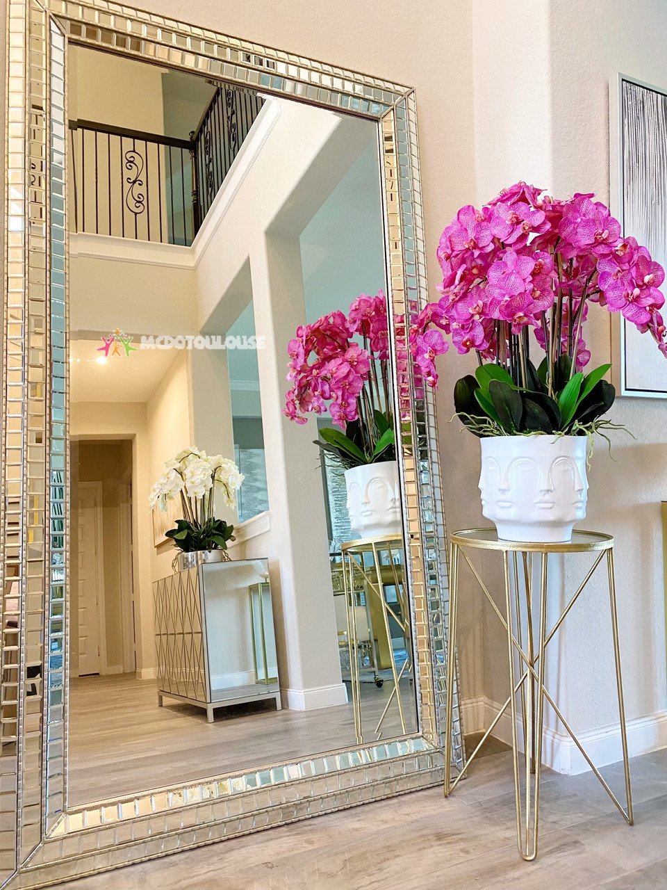 Visage Vase (White) with Orchids