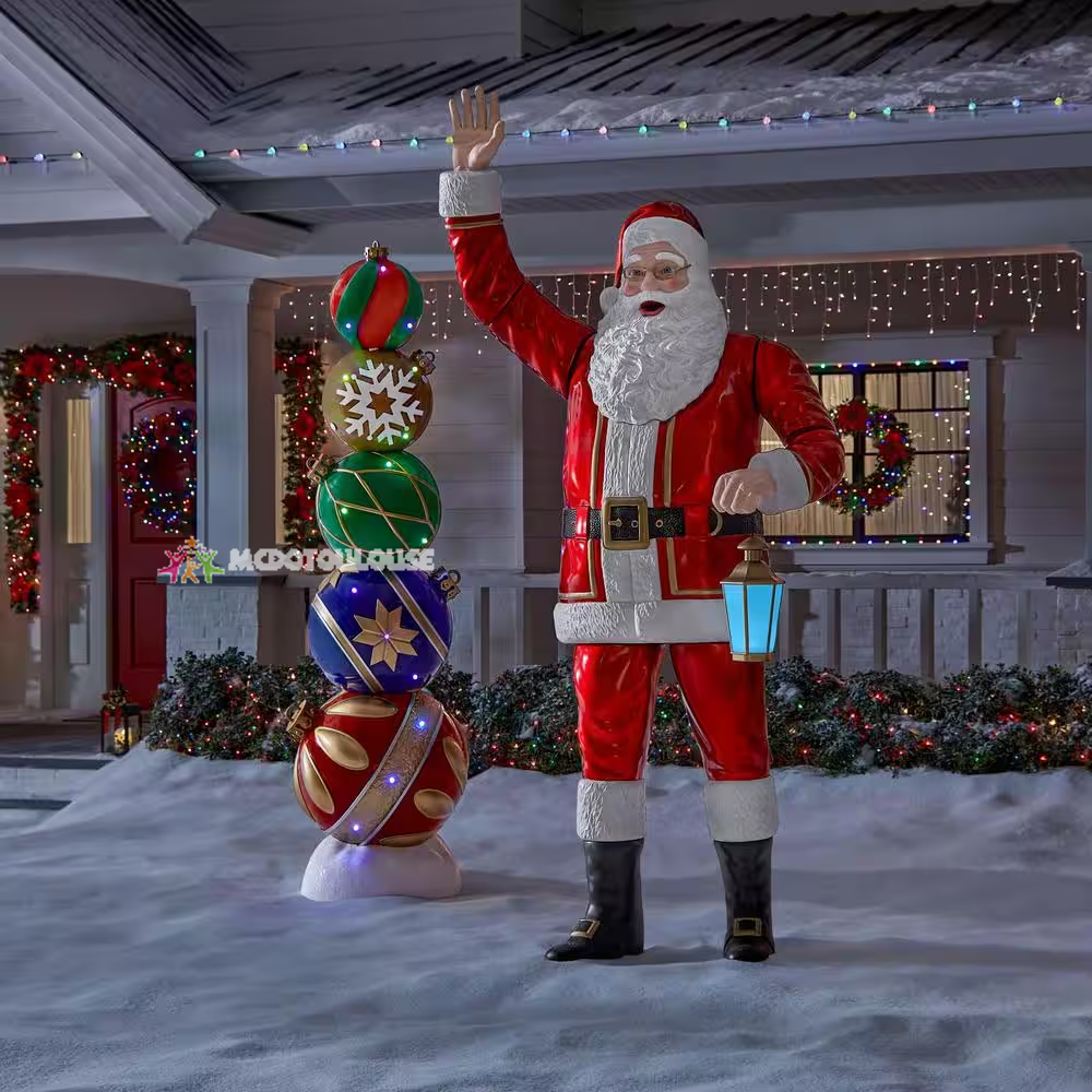 - An imposing 8.4 ft. H Santa draws the attention of passersby