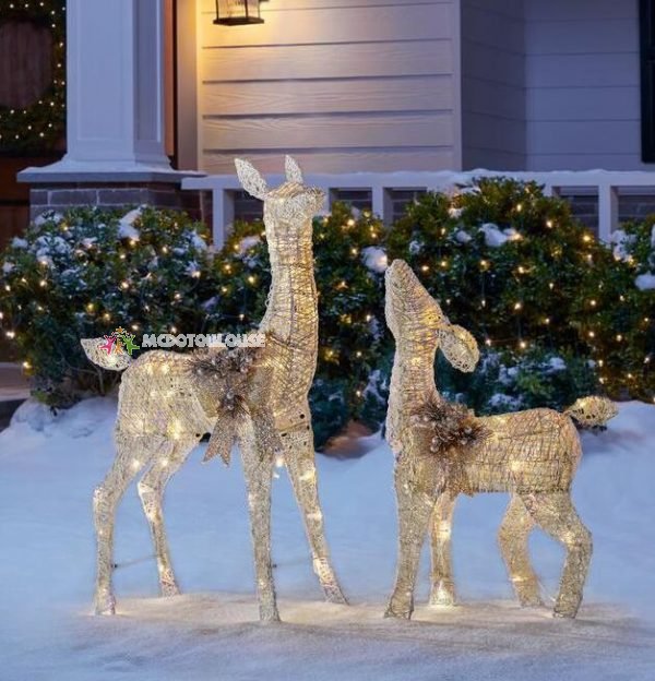 Christmas-led lighted white deer and doe
