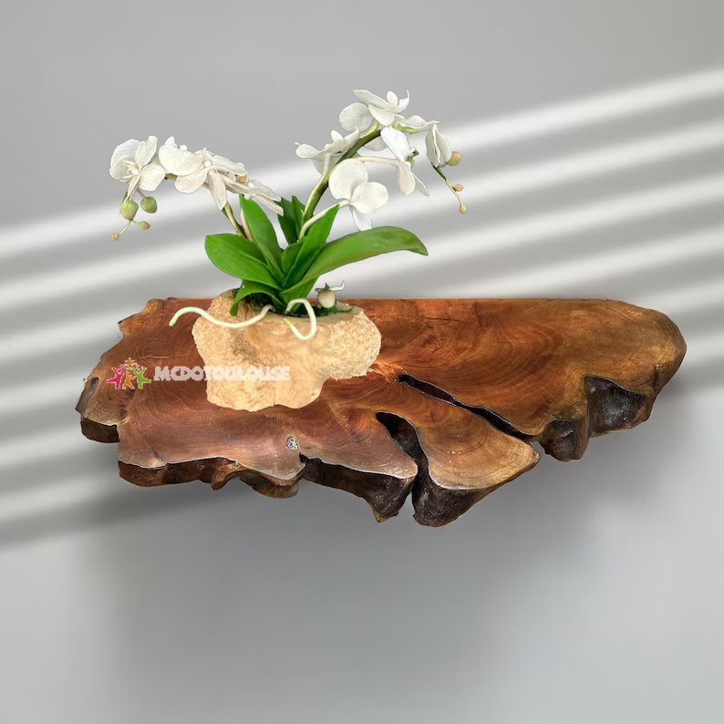 This natural live edge floating shelf wood of our shop provide useful storage options in addition to being aesthetically pleasing. Ideal for holding everyday items or showing tiny décor pieces, picture frames, and plants These reachable shelves give your house a fashionable touch and maximize space.