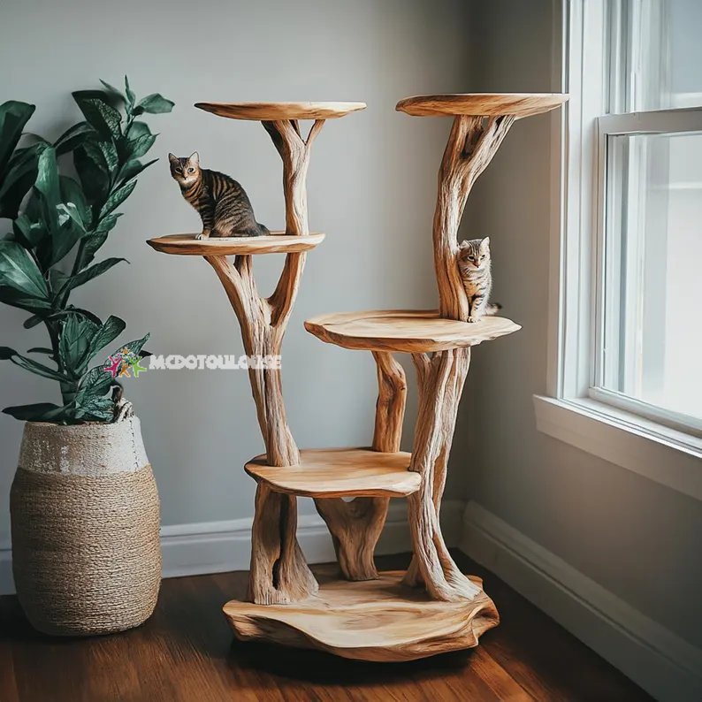 The tree-shaped wooden shelf in the picture is a creative interior product, handcrafted from solid wood by skilled craftsmen with many years of experience. The design is inspired by nature with wooden branches forming unique decorative shelves, both optimizing living space and enhancing the beauty of the house.