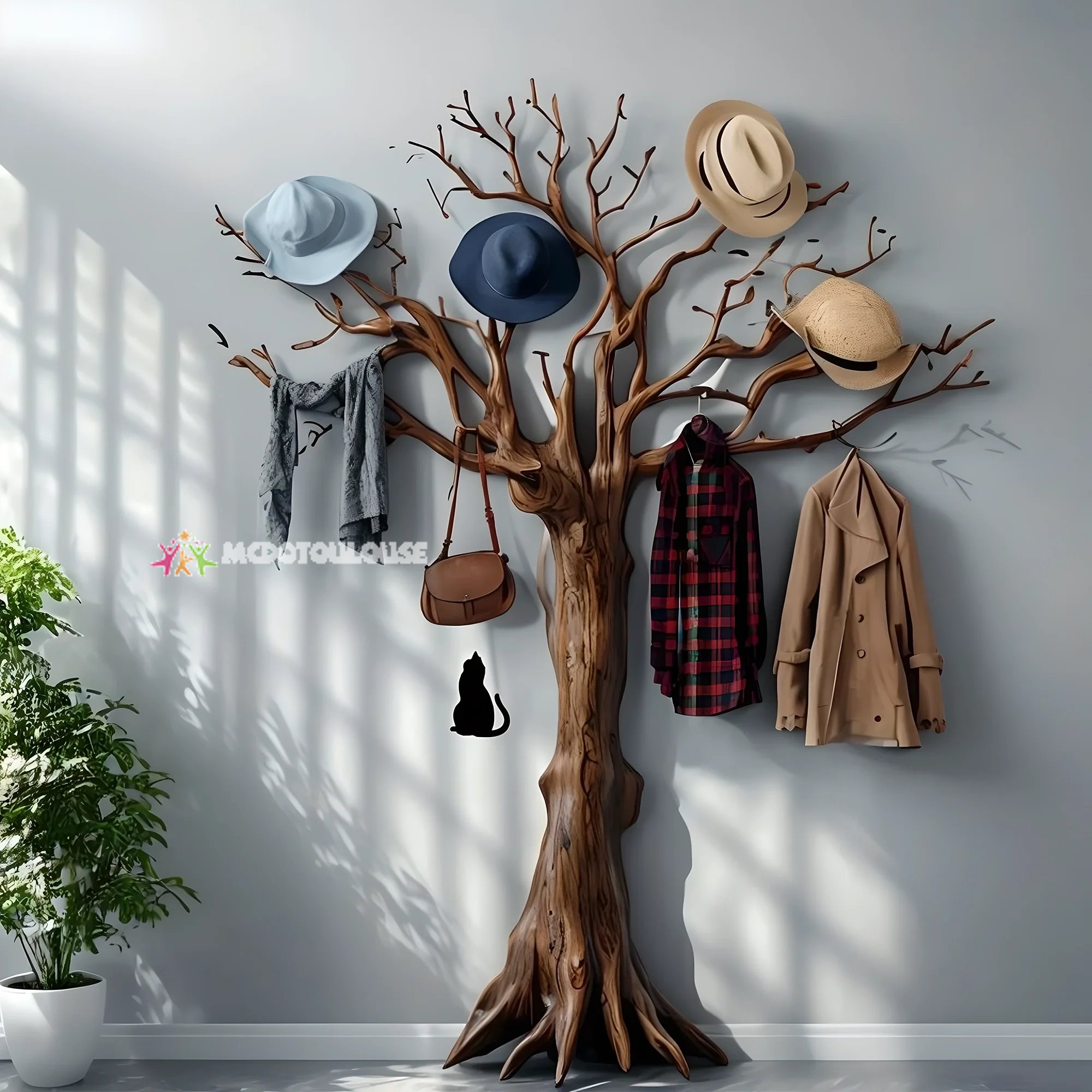 The tree-shaped coat rack is conveniently designed, making installation quick and simple. With a smart structure, you just need to follow the instructions to complete without the need for complicated tools. This is an ideal solution for modern living spaces, bringing neatness and convenience.