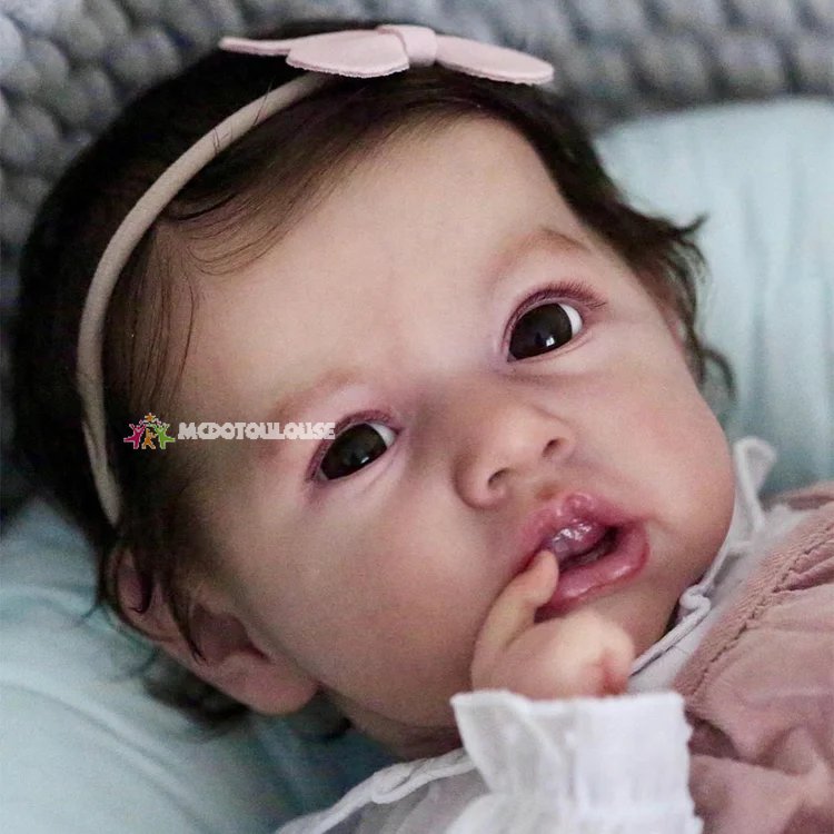 Saxia was painted with a kind of professional silicone pigments and she is sealed with a high quality matte finish for a soft and smooth baby-skin feel. She has soft veining, beautiful mottling, fine capillaries, detailed nails, newborn milia, and lifelike shading all over. Her delicate eyebrows are a combinations of mono rooting and fine detailed painting.
