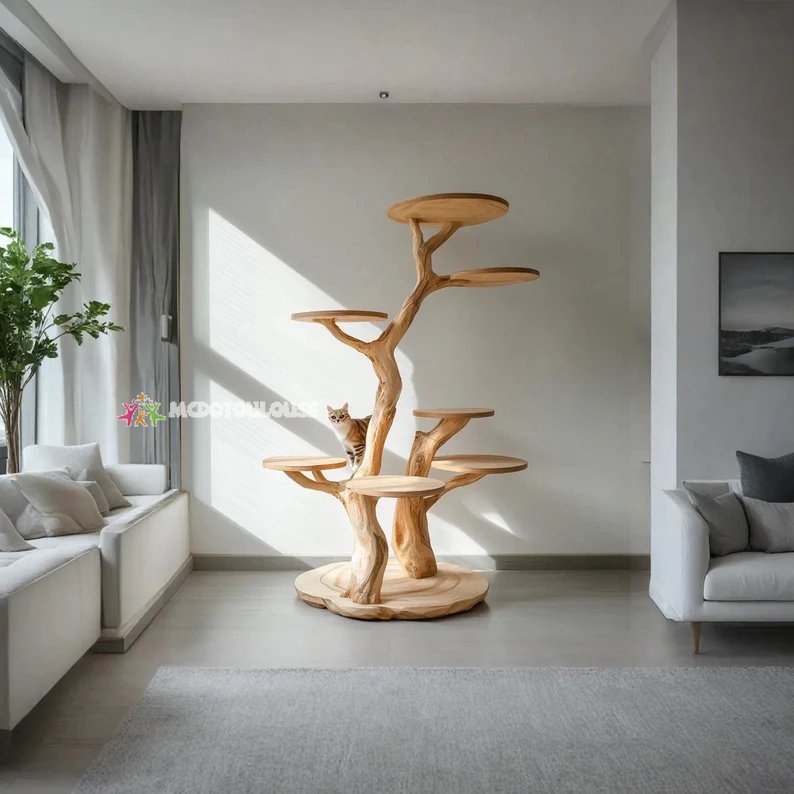 Modern, luxurious design: The shape of the shelf simulates an ancient tree, with wooden branches extending into convenient shelves to place potted plants, decorations, or personal items. Create a highlight for the living room, office or relaxation corner