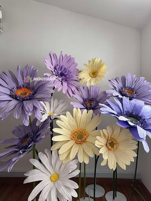 Our stunning giant flower decor has a beautiful shape and excellent workmanship. It can be disassembled at will for easy transportation. One person can complete the assembly. The height of the liftable base can be adjusted arbitrarily. The flower stem of the aluminum-plastic tube can be bent into the desired shape,outdoor waterproof.