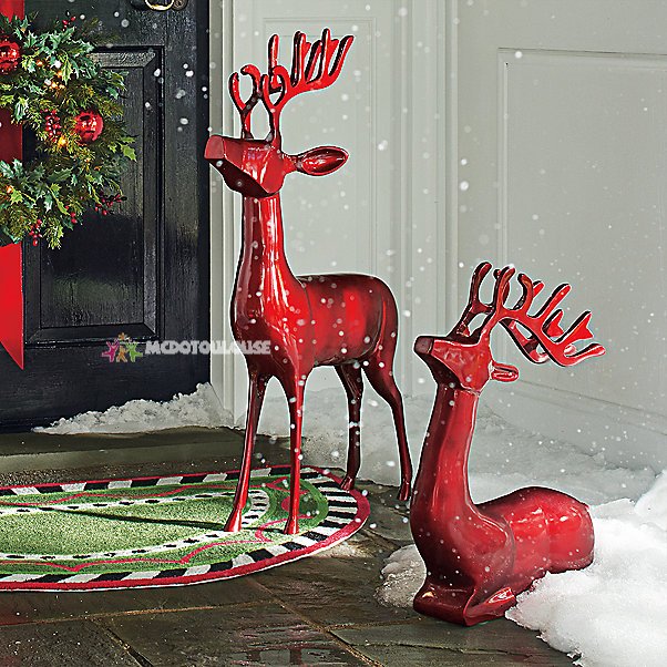 Cast-aluminum Standing Deer(42579): 21-1/2"L x 9-1/4"W x 34"H, 12lbs.