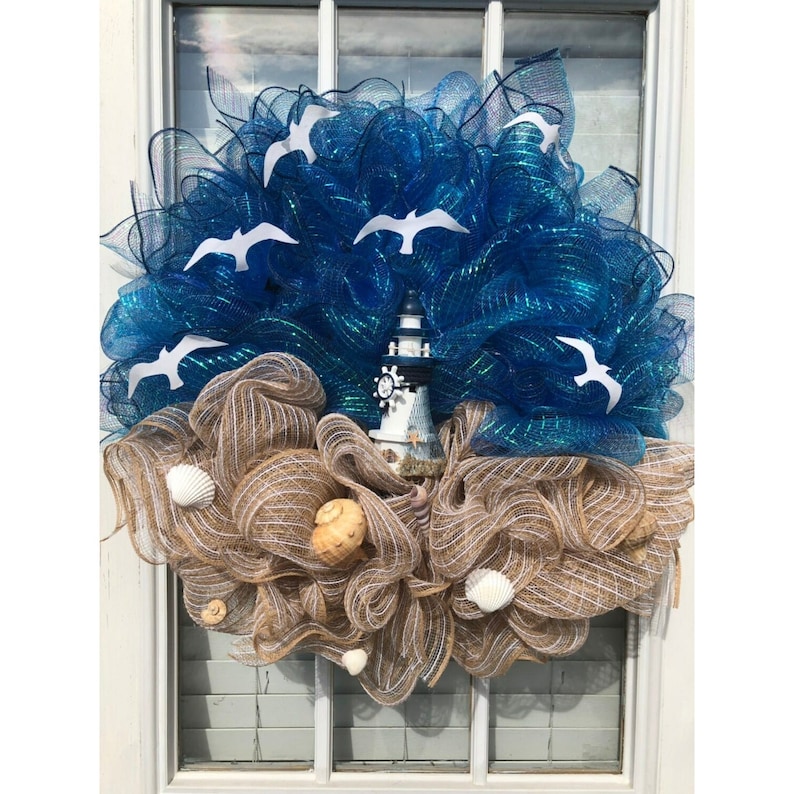 This Lighthouse Wreath will look lovely gracing your front door this Summer!Use this Sweet Spring/Summer Decor to say "Welcome to our home" throughout the season.Enjoy this beautiful, gorgeous wreath for years to come!