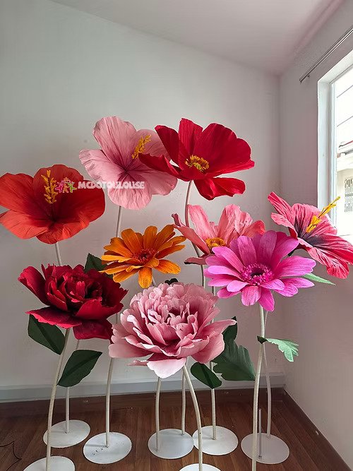 Our stunning giant flower decor has a beautiful shape and excellent workmanship. It can be disassembled at will for easy transportation. One person can complete the assembly. The height of the liftable base can be adjusted arbitrarily. The flower stem of the aluminum-plastic tube can be bent into the desired shape,outdoor waterproof.