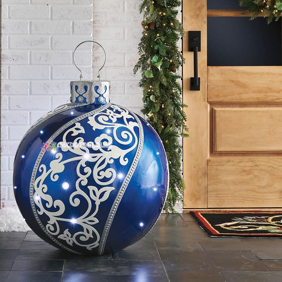 Greet guests at the door with this nearly 3-foot high light-up display. Our Stacked Ornament Door Greeter is crafted of fiberglass and is accented with 14 multicolored LED lights.