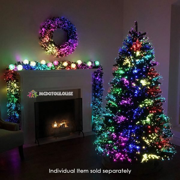 This is the 36″ diameter wreath that displays a brilliant fiber-optic holiday light show. Ideal for hanging over a fireplace or displaying on a front door, the fiber-optic strands are tucked among the wreath’s PVC tips that are realistically molded to replicate the growth patterns of actual conifers. Using 15 LEDs to illuminate 320 fiber-optic tips, the wreath lights a room or porch with 16 different shimmering displays of dancing color. AC plug with 70″ long cord.