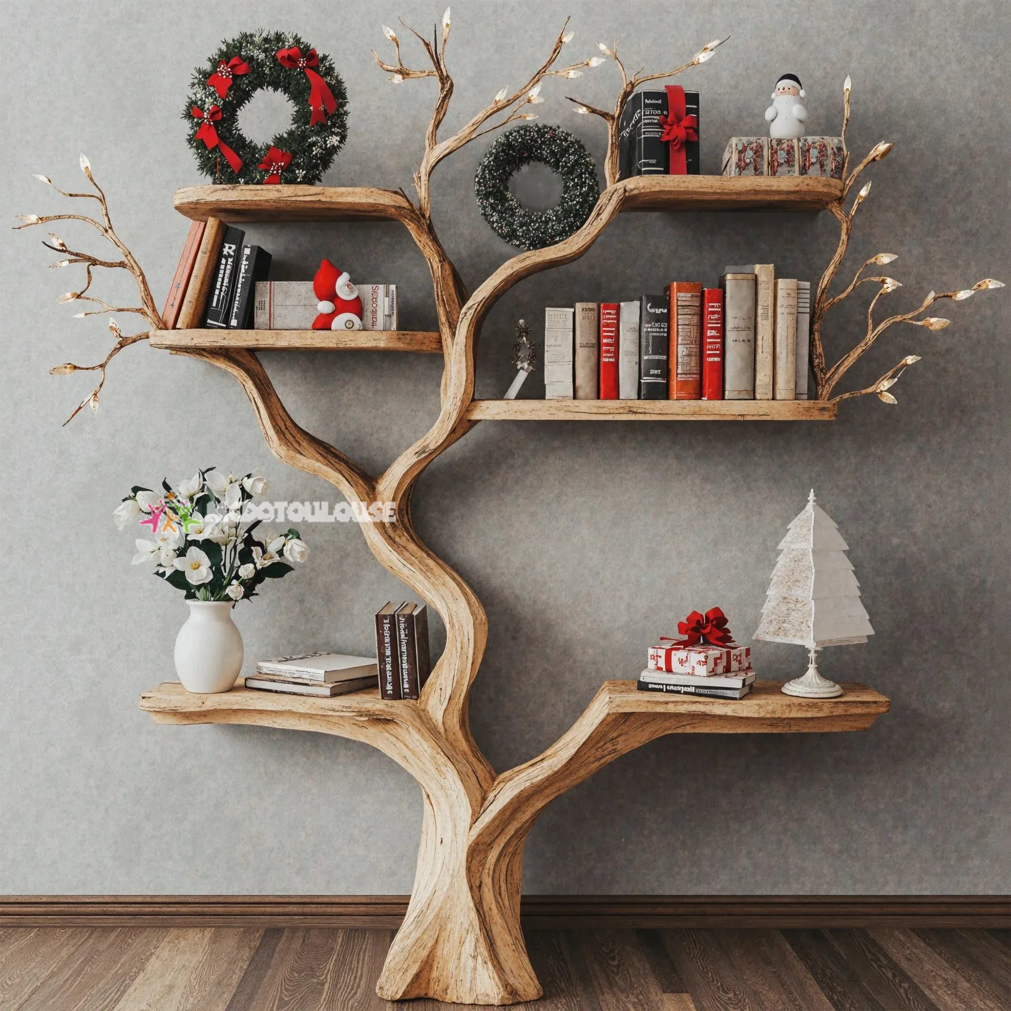 Tree Bookshelf Decor Driftwood Shelf Xmas Floating Bookshelf SINLCM004