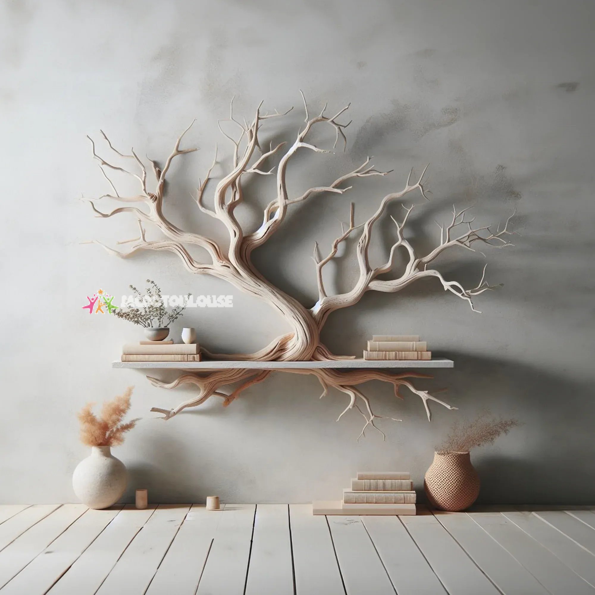 Tree branch floating corner shelf is not only a common interior product but also a symbol of creativity and sophistication in interior decoration. Let them make your space more beautiful and modern than ever!