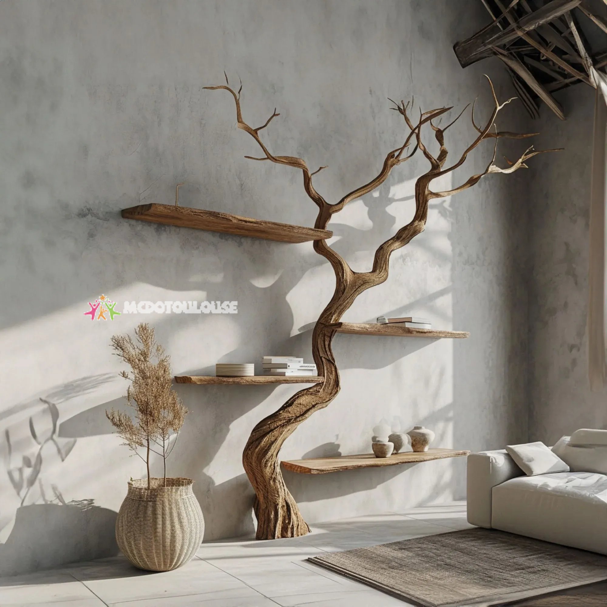 Harmonizing with the intimacy of nature and the flexibility of bookshelves, Spry Interior has created an artistic masterpiece - Treebook shelves. It offers an enhancement in the quality of living spaces, providing versatility to display various items and instilling complete confidence in its sturdiness.