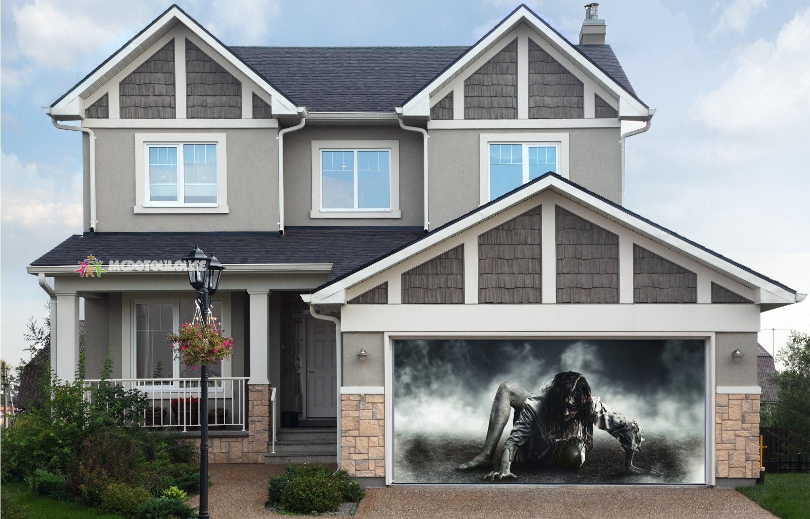 Looks like real ! Made out of top quality material and high resolution dye-sublimation printing. Festivemural selling unique garage door covers for the all year and seasons its made of high quality 100% polyester weather resistant and can be used for sectional panels and one piece tilt-up garage doors, if you’re garage door have dent , rusty or you just like to change the front of Your front house this is the great solution for your home.