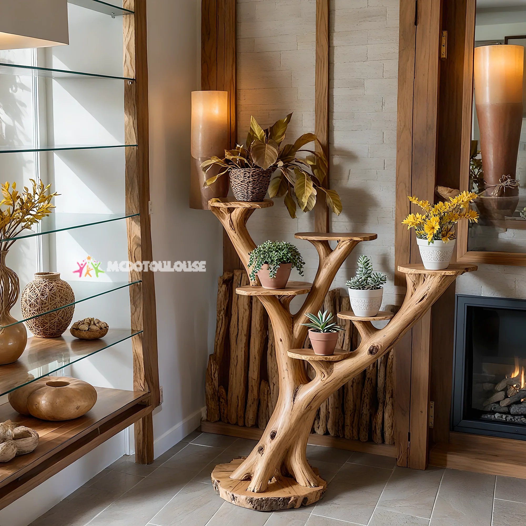 The artistic bonsai shelf is a creative product, suitable for those who love nature and want to bring natural beauty into their living space. With a design simulating a real tree trunk, this product is not only a piece of furniture but also a unique work of art, creating a subtle highlight for any space.
