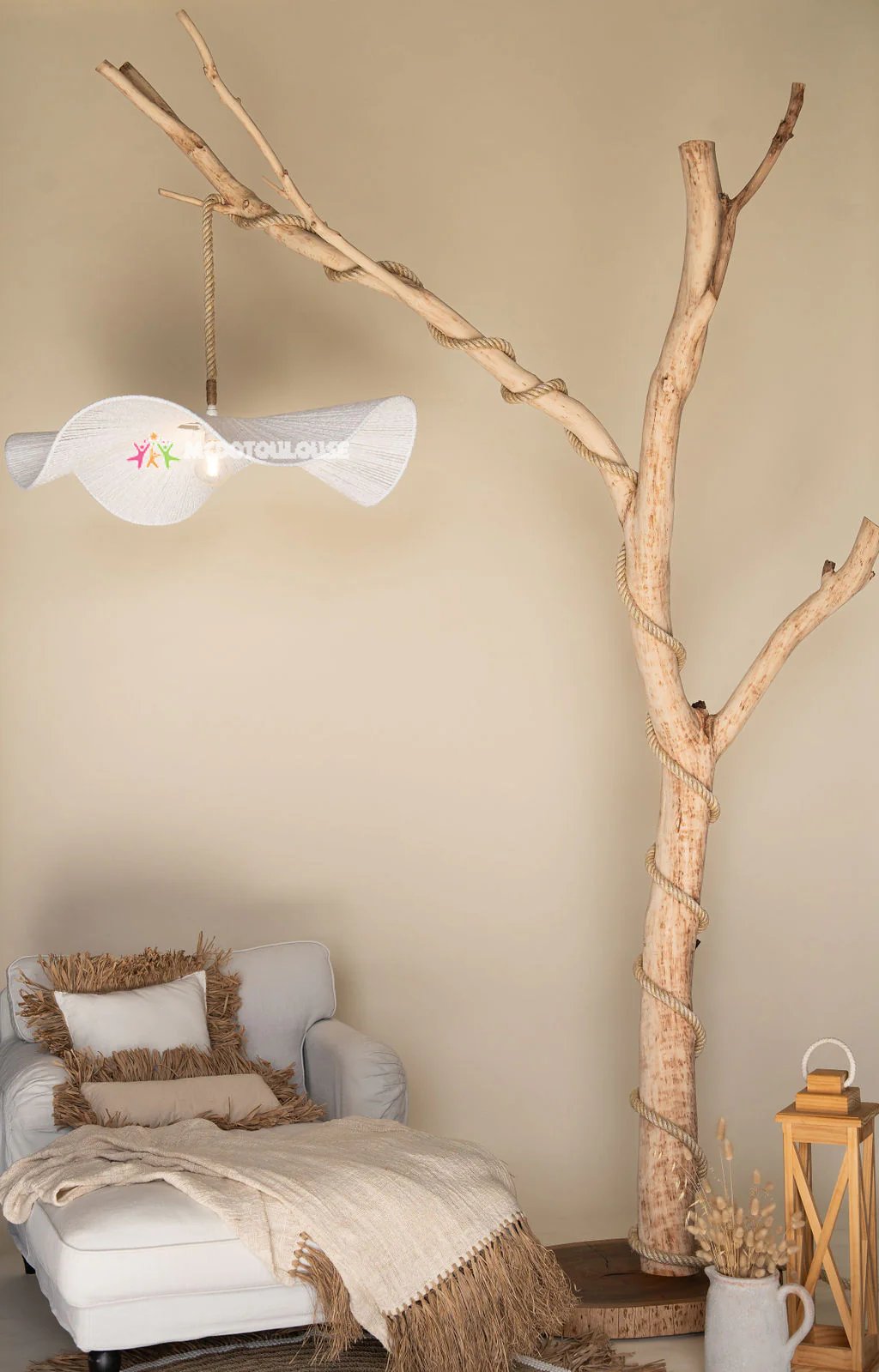 - Drum Lampshade in Raffia – A timeless shape that enhances the lamp’s bold presence.